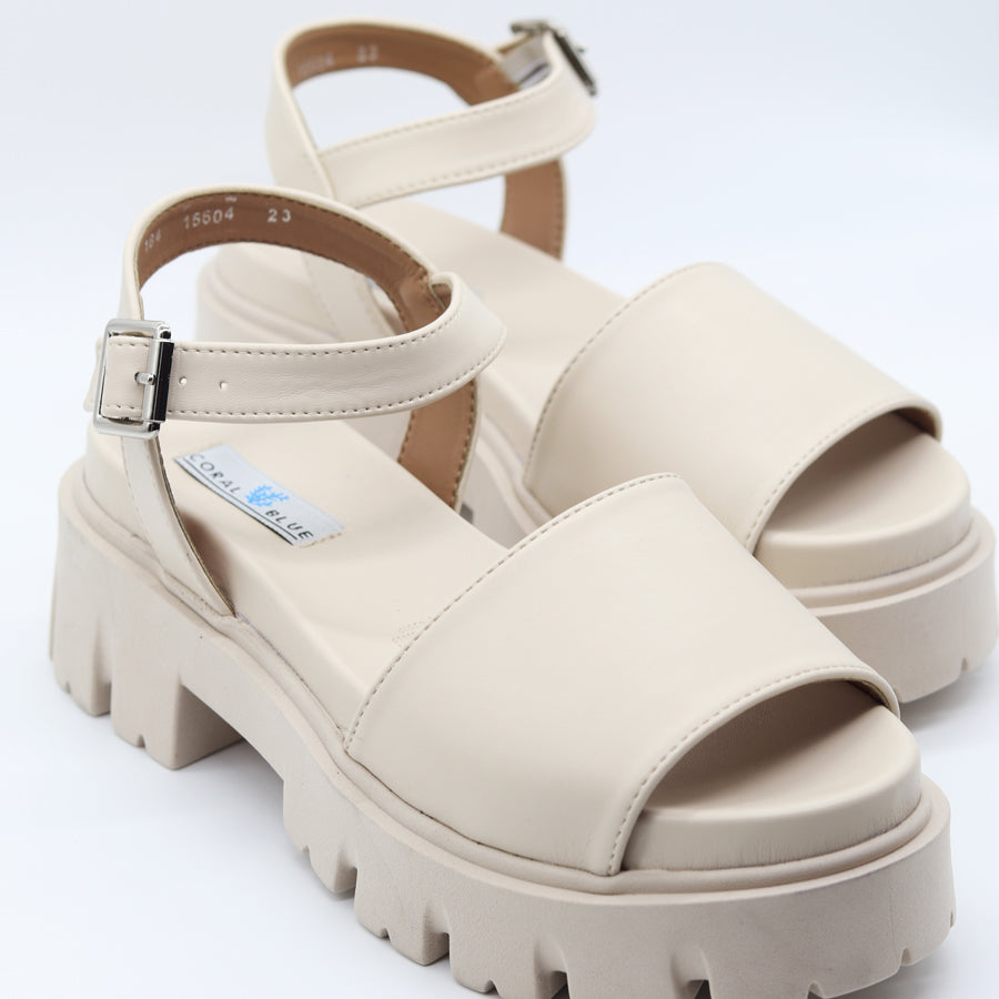 Sandalia doble plataforma suela chunky, pulsera ajustable.